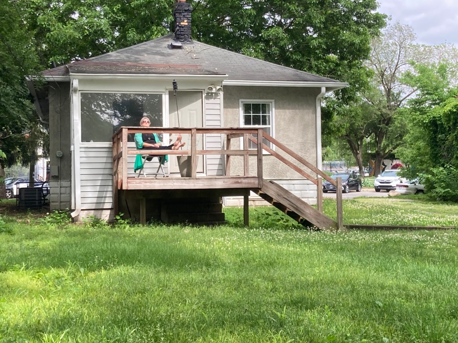 I’m sitting in my backyard, enjoying the fresh air and sunshine. And also, the wildlife that regularly visits us.