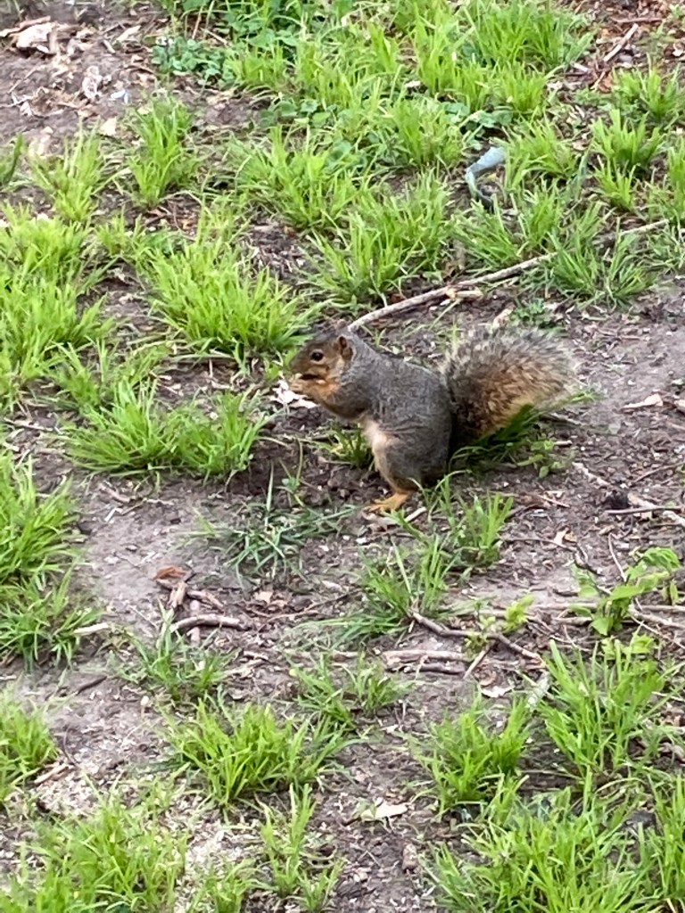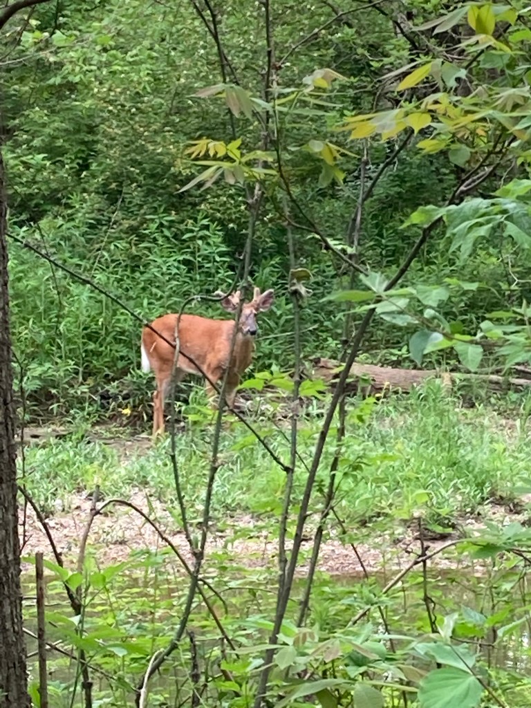 Raccoons, opossums, squirrels, woodpeckers, cardinals, blue jays all regularly visit our backyard. I have spent hours watching the squirrels collecting nuts in preparation for winter. The morning we had a family of opossums visit us was particularly exciting, especially once we had Googled to confirm that they really were opossums. And then there are the deer we’ve sighted not too far from here. Not to mention evidence of coyotes in the forest behind our workplace.